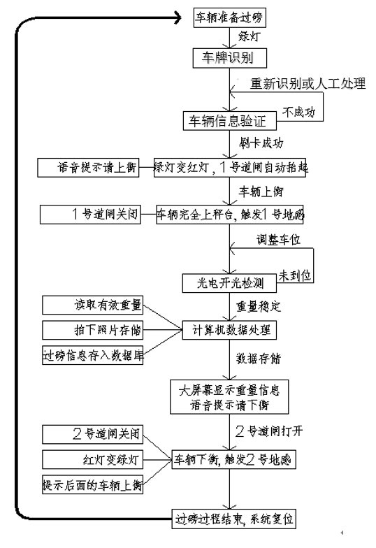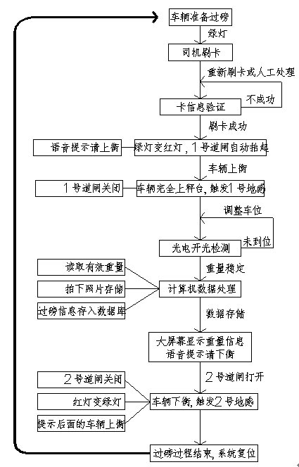 RFID卡自動(dòng)稱重系統(tǒng)自動(dòng)識(shí)別車輛車牌號(hào)碼,方便快捷。要求:場內(nèi)對(duì)車輛管理較嚴(yán)格,車牌的完整度和清潔度。過磅原理流程如下: