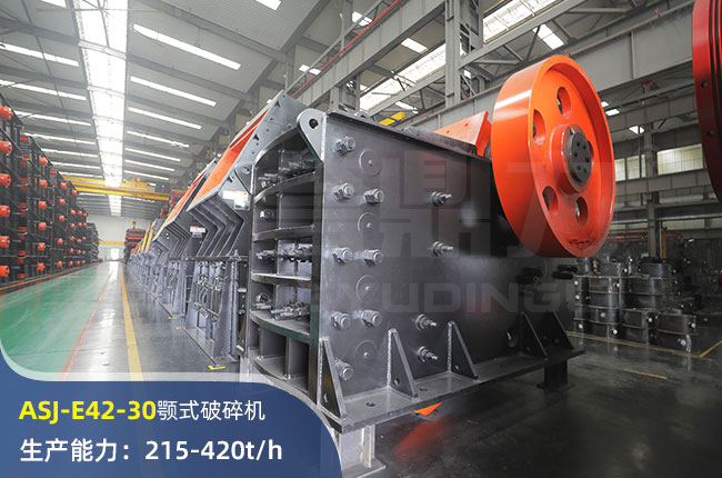 ASJ-E42-30顎式破碎機(jī)進(jìn)料口尺寸1070×760mm,進(jìn)料粒度≤500mm,出料大小≤100mm,電機(jī)功率110kw,時(shí)產(chǎn)量在420左右。