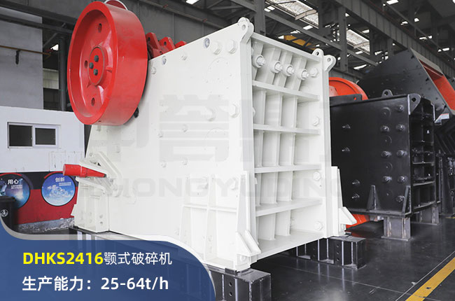 DHKS2416顎式破碎機采用的材料、制造工藝,具有結構強度高,設備性能高,破碎比更大、產量更高,綜合成本更低等優勢,時產量在25-64噸左右。