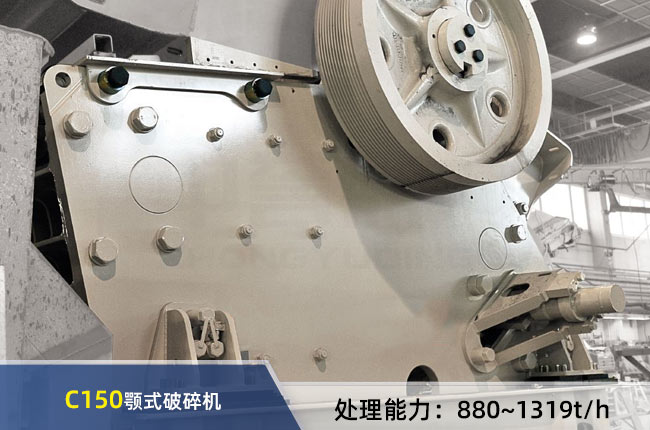 c150破碎機(jī)是型號(hào)為C150鄂式破碎機(jī),進(jìn)料口寬度是1400mm,深1200mm,排料口允許調(diào)整的范圍125-250mm,每小時(shí)產(chǎn)能800~1319噸之間,可滿足中大型砂石廠生產(chǎn)需求。