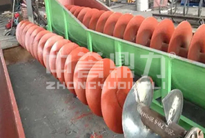螺旋洗砂機處理能力每小時可達240噸左右,且污染少、故障率低。
