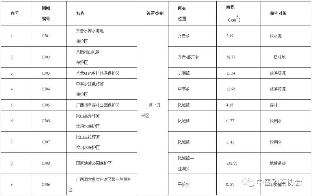 禁止開采區(qū)基本情況表
