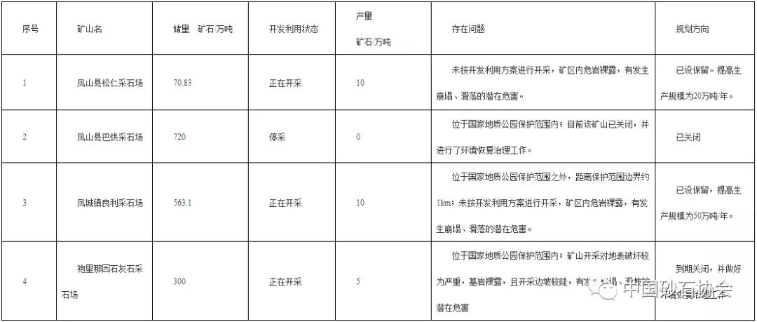 鳳山縣采石場開發(fā)利用情況