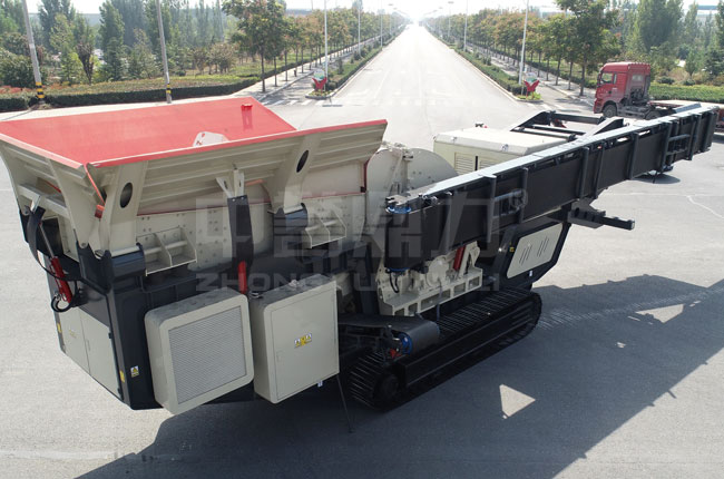 車載移動破碎機設(shè)備根據(jù)底盤移動機架分為輪胎式和履帶式,從破碎程度又有粗碎、中碎、細碎之分。