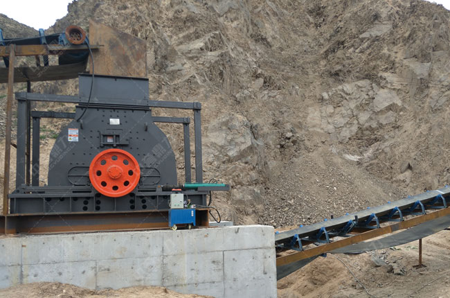 這條時產(chǎn)500噸的砂巖生產(chǎn)線于2017年6月投產(chǎn),主要加工硬質(zhì)砂巖,采用的是給料機(jī)+硬巖破碎機(jī)+篩分機(jī)。主要處理10-20、10-30、鐵路道砟石料。
