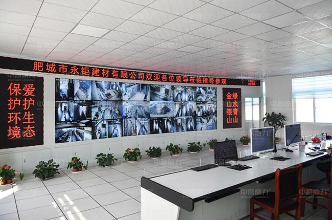 從以上現(xiàn)場實拍圖可以看出碎石加工生產(chǎn)線都在密閉環(huán)境下,成品料采用倉儲罐儲存,頂部配有收塵器,罐下是裝車區(qū)域,可視廠區(qū)路面硬化及綠化,廠區(qū)整體干凈,無揚塵;該項目同時還采用了中譽鼎力智能礦山管理系統(tǒng),如上圖中控室圖,可監(jiān)控廠區(qū)及各主要環(huán)節(jié)實時畫面。