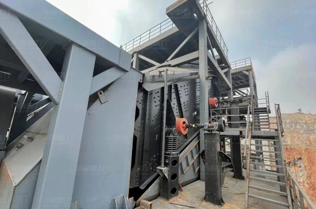 該項目設計為單臺大型1820重錘破加兩臺1622整形破,在1820重錘破后設有中轉料倉,粗碎后的石料在此緩沖后進入兩臺1622整形破中細加工,之后通過兩道篩分系統篩分石料,將不同規格的石料通過皮帶機送至儲料倉。