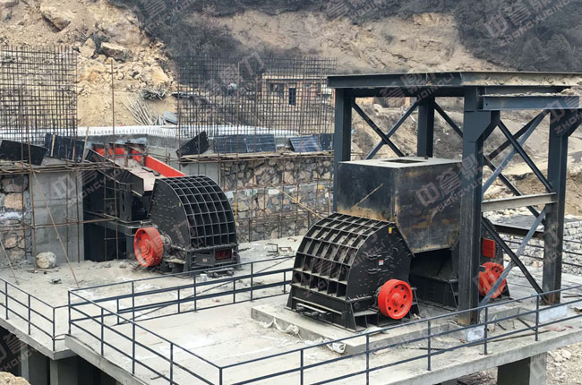 石灰石原料進(jìn)入給料機(jī)后入重錘破進(jìn)行粗碎,粗碎后由皮帶機(jī)送入兩臺(tái)錘式破碎機(jī)進(jìn)行整形破碎,在送入振動(dòng)篩進(jìn)行篩分,篩分出的合格石料進(jìn)入成品料堆,不合格的石料由輸送機(jī)再次送入二段錘式破碎機(jī)進(jìn)行破碎。