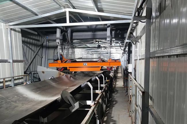 A:直接采用箱式皮帶輸送機(jī),也可以通過加裝皮帶廊道抑制粉塵,在落料點(diǎn)加裝干霧抑塵裝置。