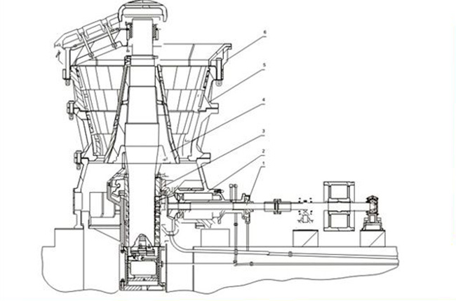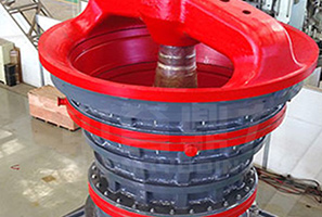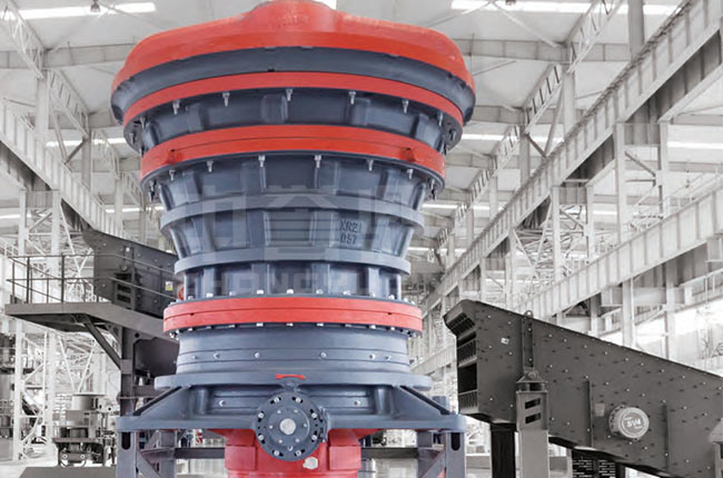 旋回式破碎機主要以機座、偏心套、轉動、破碎圓錐、中架體、橫梁、油缸等部件組成。