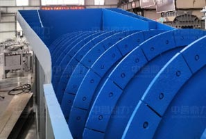 鼎力移動式螺旋洗砂機殼焊接后整體加工,軸管兩端法蘭采用大型龍門銑床加工,兩端的同心度,螺旋葉片選用抗磨材料并經過處理,抗沖擊性強,磨損小,設備連續工作時間長,進一步減少使用維護成本。