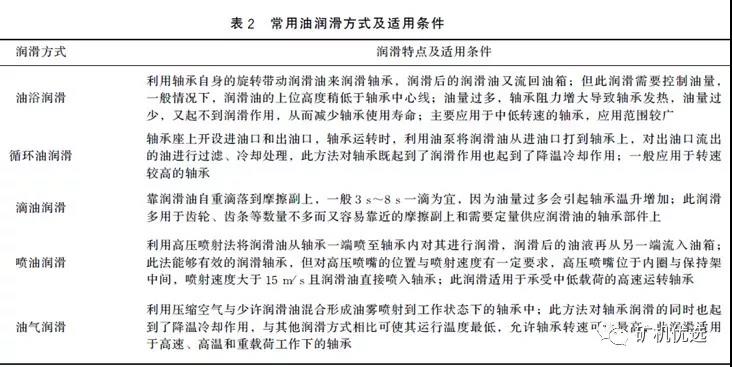 常用油潤滑的潤滑方式有油浴潤滑、循環油潤滑、滴油潤滑、噴油潤滑、油氣潤滑,其潤滑特點及適用條件見表2: