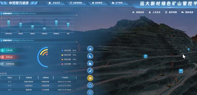 實時監控設備運行情況,如啟動、停機、故障、預警,可實現對設備風險預測及提醒,為礦山生產運營奠定了監視的基礎。