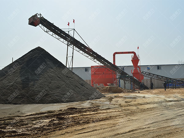 該套制砂機主要包含了振動喂料機、顎式破碎機、圓錐碎石機、礦山振動篩 、碎砂機、帶式運輸機等供電機械,具體制砂技術過程為:先,開采來的巖石由顎式破碎機進行破碎;產成的粗石子由皮帶運輸機運輸至圓錐碎石機進行深度破碎,整型破碎后的巖石進礦山振動篩 篩選分級出兩種石子,符合碎砂機給料粒度的石子進碎砂砂子;不符合給料粒度的返回再進細破,直至符合要求為止。