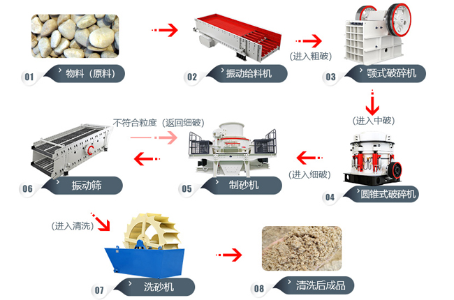 應(yīng)用用戶:風(fēng)化石大多數(shù)是風(fēng)吹日曬造成,所以粒型很多不規(guī)則,該生產(chǎn)線適用在處理量在100噸左右,不大于500毫米的風(fēng)化石制砂用戶,整體風(fēng)化石制砂機械價格優(yōu)惠,但是處理量提高一倍,該搭配方案。